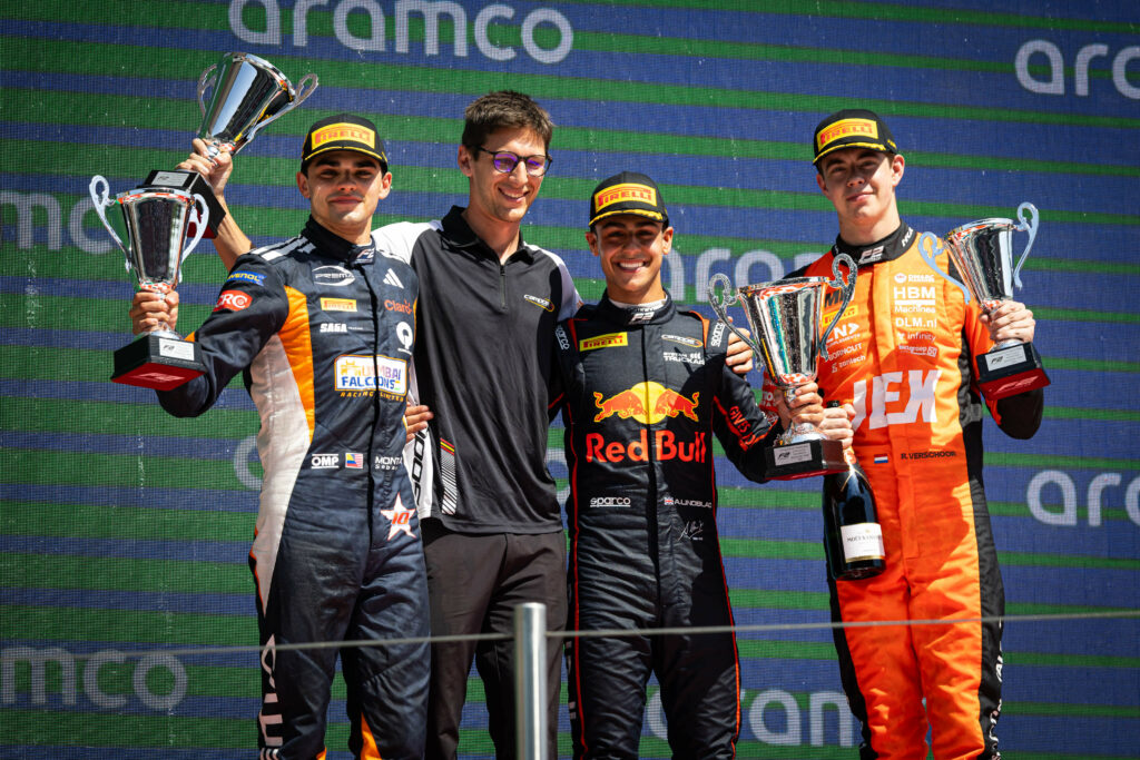 Lindblad na podium po wyścigu w Hiszpanii. Źródło: Red Bull Content Pool