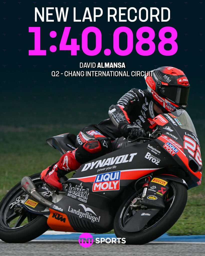 David Almansa pobił sobotę rekord toru w Moto3. Źródło: x.com/@bikesontnt