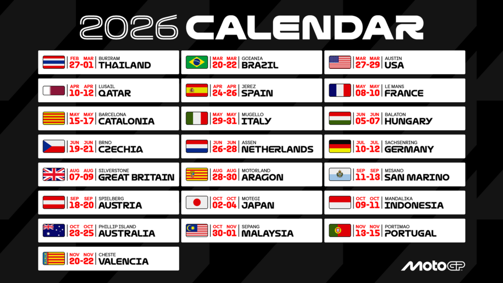 Sezon MotoGP składa się 22 rund rozgrywanych na całym świecie. Każda runda ma formę klasycznego Grand Prix, a weekend wyścigowy obejmuje treningi, kwalifikacje oraz wyścig główny. W 2023 do programu dołączono również sprinty, które dodatkowo zwiększyły intensywność rywalizacji, jak też zmieniły strukturę weekendu. Punkty zdobywane są zarówno w sprincie, jak i w niedzielnym wyścigu, co sprawia, że walka o mistrzostwo trwa często do ostatnich rund sezonu.